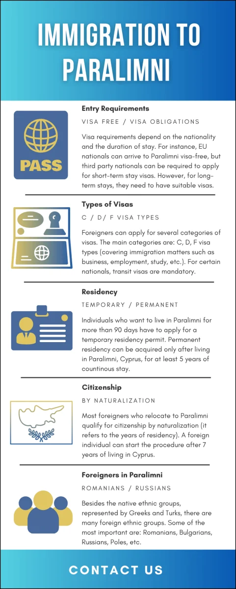 More details on other immigration services available in Paralimni and other major Cypriot cities can be provided by our lawyers. Please contact our Cyprus immigration lawyers for additional information on any aspects that are prescribed by the immigration law applicable here.
